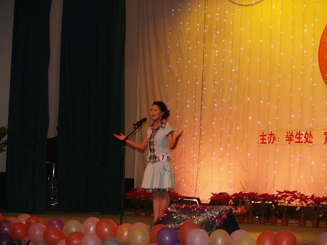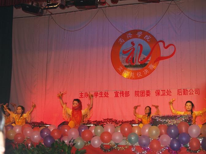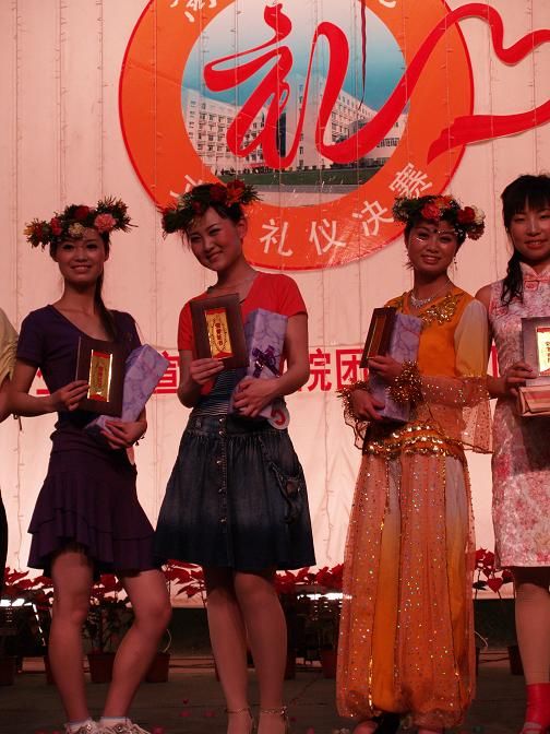2009年6月5日晚由学生处主办,党委宣传部、院团委、保卫处和后勤公司协办的“做文明学子,建和谐校园”之礼仪决赛在大学生活动中心隆重举行。本次礼仪比赛分为礼仪形象展示、主题演讲、个人才艺展示三个环节,活动内容精彩纷呈、寓教于乐,将时尚与传统相结合、流行元素与校本文化相结合,选手们尽情地展示了自己的青春风采,搏得了现场观众的热烈喝彩。在“做文明学子,建和谐校园”大型系列活动中评选出的十位礼仪形象大使依次闪亮登场,掀起了礼仪决赛的高潮。经过形象展示、主题演讲、才艺展示等激烈角逐,我系周美同学不负众望,最终摘得亚军。