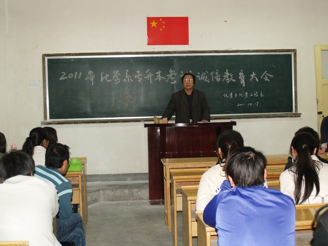 4月7日我系举行了专升本考试诚信教育大会,我系党总支书记刘全民老师,辅导员张晓文老师和王刚老师出席本次会议。