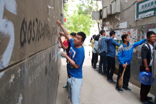 出发前我院党总支书记刘全民对本次劳动进行了简单的布置和分工,他要求所有师生在保证安全的同时,发扬热爱劳动、服务社会的传统美德,体会劳动的乐趣。明确任务后,两院学生在刘书记和辅导员老师的带领下走出校园,走进位于学校周边的东店子村,清扫地面上的垃圾,撕“野广告”,同学们忙得不亦乐乎。劳动结束时,同学们回头看看清理的街道变得那么的干净、整洁,所有人的脸上绽放出了开心的笑容。