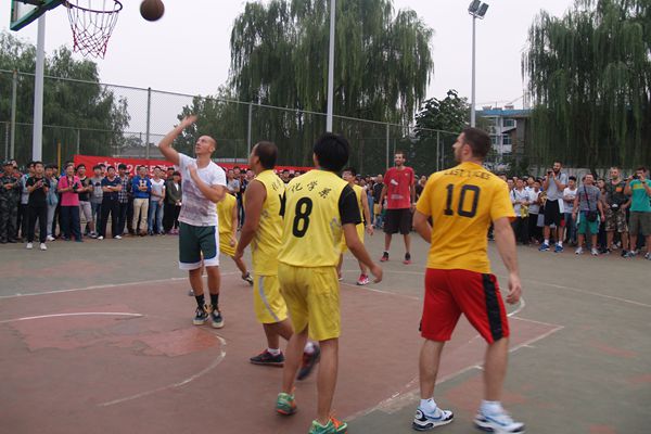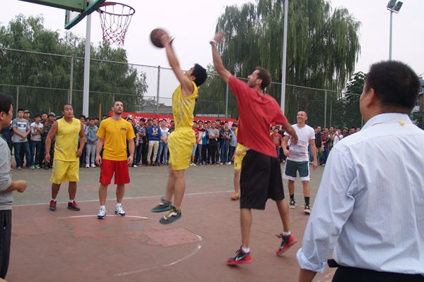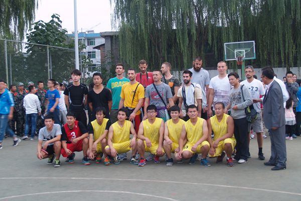 9月19日下午五点半,欧美职业篮球对抗队应邀与我院篮球队友谊赛在操场进行。