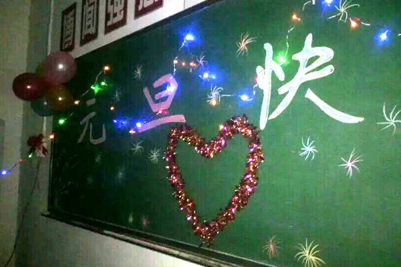 教室在同学们的精心装扮下焕然一新,别致温馨,庆元旦晚会上本班同学各自拿出自己准备的节目,或是用心编排的舞蹈;或是逗大家一笑的相声;或是歌曲串烧;或是集体进行的小游戏……同学们的欢笑不断,心中喜悦。