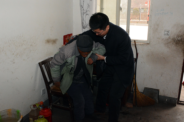 同学们怀着诚挚之心,带着慰问品来到敬老院,老人们热情欢迎同学们的到来。志愿者的到来使原本寂寞的敬老院充满了笑声。同学们表演节目给老人,分发水果等慰问品,陪老人聊天。同学们和老人自由交谈的同时,认真倾听老人们讲述着改革开放前后的个人经历,令同学们了解我们今天的幸福来之不易,同学们也把自己在外读书情况以及自己家乡情况给老人们一一讲述, 一边跟老人谈心一边为老人锤背。同学们与老人们进行的“歌曲互动”让老人和同学都言笑晏晏。最后,同学们为老人们打扫宿舍卫生,擦桌子、拖地、擦帘子等。屋外寒风阵阵,屋内暖意融融,活动在大家的欢声笑语中圆满结束。
