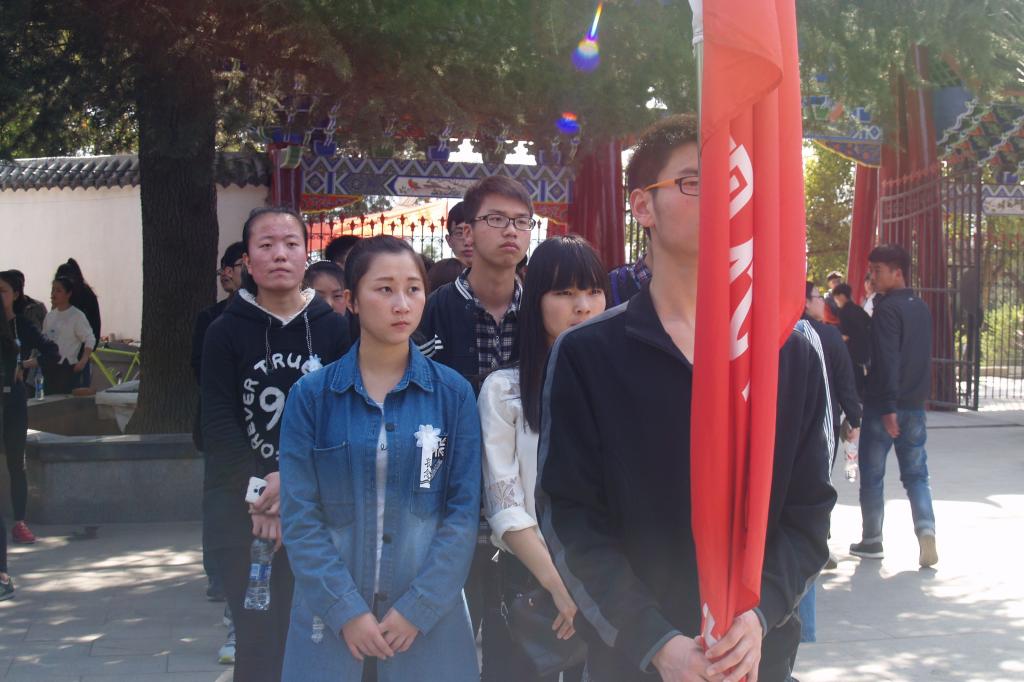 我院于3月30日下午两点十分,在五号楼前集和学生会各部成员,由团总支书记王淦卿老师带领学生会各部参与此次活动。参加此次扫墓悼念的同学说:“通过此行了解到中国共产党是如何肩负起历史重任,组织形成抗日民族统一战线,走向抗日最前沿的。我们充分的感受到了当时中国共产党抗战的决心和信心。”