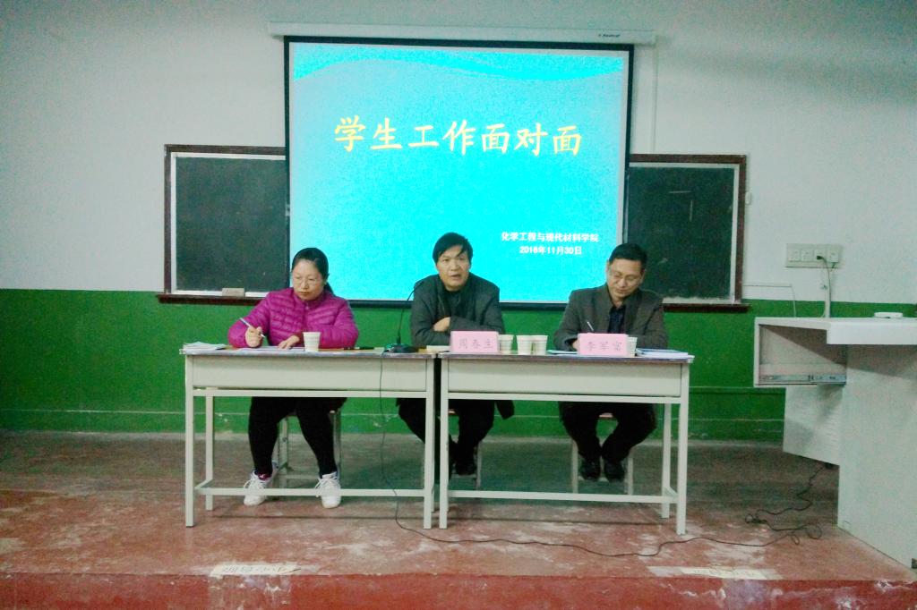 为更好解决学生在学习生活中遇到的问题,搭建密切联系师生的学生工作平台,提升学生工作管理育人、服务育人的针对性与实效性,我院于11月30日16点30分在5号楼108教室开展“敞开心扉,用心交流”学生工作面对面交流活动。会议由学工办陈主任主持,院长周春生教授、党总支书记李军富教授,全体辅导员以及各班班长、团支书、宿舍长参加了会议。