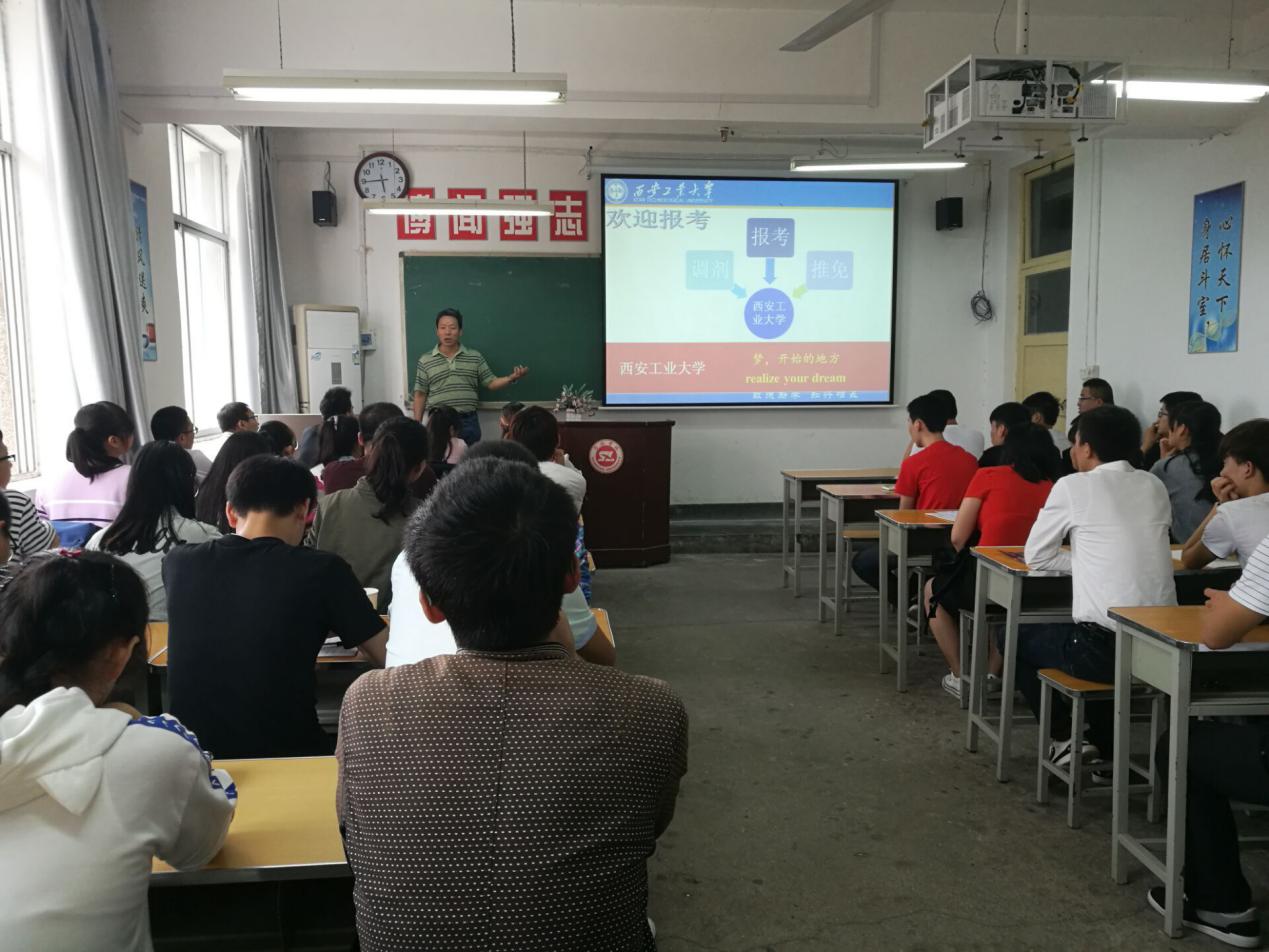 宣讲会上,陈卫星教授就西安工业大学的整体办学条件、师资力量、专业特色、科研成果作了详细介绍,分析了目前研究生毕业的就业形势及考研初试需要注意的问题,同时,还介绍了近几年我院考入西安工业大学学生的学习生活情况。