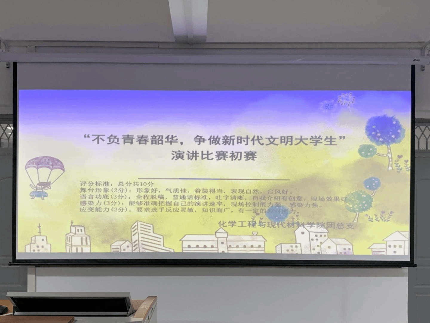 为积极引导我院学生树立文明意识,培养使命担当的情怀,2020年11月6日晚七点,我院于丹江4号楼205教室举办以“不负青春韶华,争做新时代文明大学生”主题演讲比赛,担任本次比赛评委的有团总支书记房禹、学生会主席团及学生会各部门部长。本次比赛比由张紫萱、周幕伦主持。