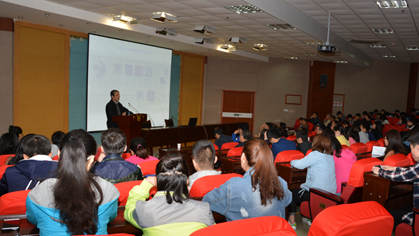 4月17日,国家杰出青年科学基金获得者、武汉大学珞珈特聘教授、博士生导师刘义应邀来到我校,为师生作了题为《纳米生物效应物理化学基础》的学术报告。化材学院和生物学院师生聆听了报告。报告会由副校长刘宝盈主持。