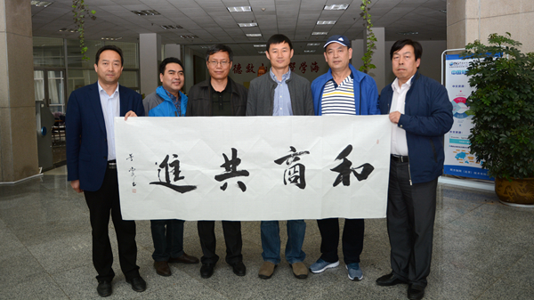 在党政办公室、招生就业处负责人的陪同下,刘勇向臧佩铸一行介绍了我校基本情况,带领客人参观了红色文化资料馆、商洛文化暨贾平凹研究中心、艺术成就展厅等处,代表学校向和田地区赠送“和商共进”书法作品一幅,表达了我校对与和田地区开展校地合作、实现互惠共赢的热诚态度。