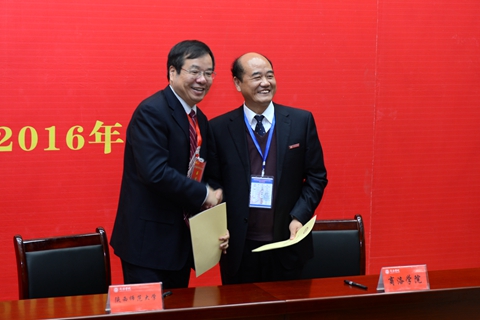 会上,陕西师范大学与我校签订战略合作协议,西北大学与我校签订对口支援合作协议,商洛六县一区政府、商丹工业园区管委会与我校签订校地合作联盟协议。