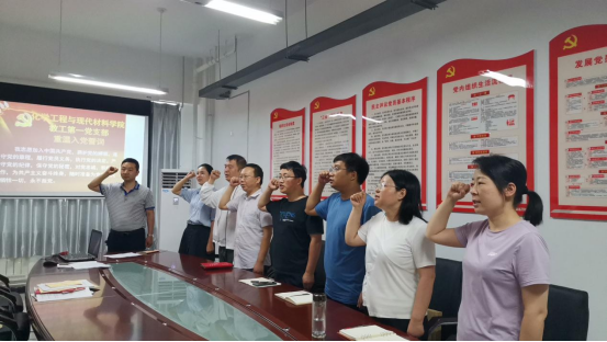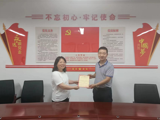 支部组织全体党员重温入党誓词,为王新军、周春生和刘彦峰三位同志发放党员政治生日贺卡,增强党员的荣誉感、归属感、责任感和使命感。