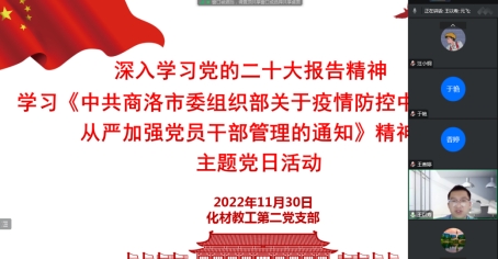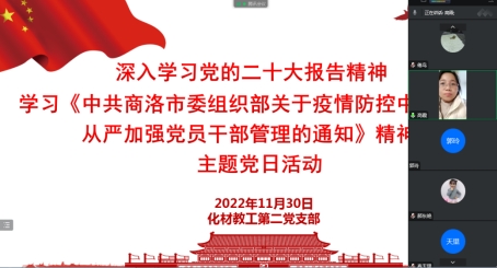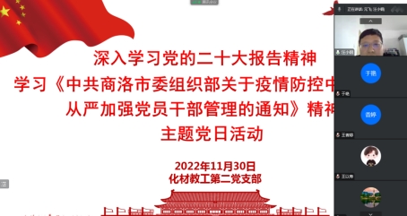 11月30日下午2:00,化材学院教工第二党支部组织支部全体党员通过线上腾讯会议方式开展了主题党日活动。