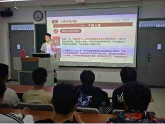 随后,刘鑫磊就如何加入伟大的中国共产党,进行了详细的讲解,介绍了一系列的审核和评估办法。刘鑫磊呼吁全体学生向优秀党员看齐。