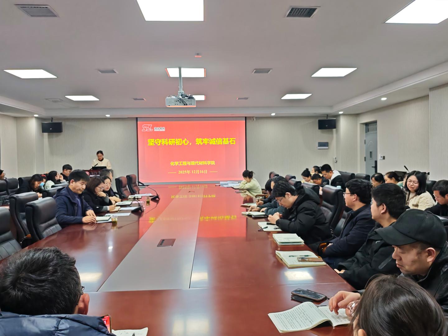 为深入贯彻落实教育厅关于撤稿论文自查及“回头看” 工作部署,全面强化科研人员学术道德素养,筑牢科研诚信防线,12月16日下午,学院组织全体教职工召开“坚守科研初心,筑牢诚信基石”科研诚信主题教育活动。活动由学院科研秘书侯小洁主持。