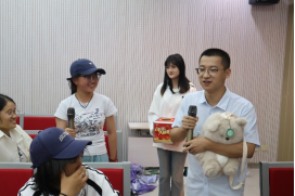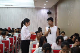 会议第二项议程由化学专业教师、学院纪检委员、有机功能分子与材料创新团队负责人王以寿博士携团队学生分享大学生涯的规划与奋斗。王以寿老师以有奖问答的方式,为新生发放定制小纪念品,帮助新生加强对学院和专业的了解和认识,并且以《我和我的学生们》为题,分享了近三年他和团队学生以赛促教,以赛促学的故事。三年级学生宋夏天同学分享了参与第二课堂经历,四年级学生李逍以《努力、拼搏——我的大学生活》为题,分享了她丰富多彩的大学生活,并发起了“化学人,化学魂”为主题的短视频Vlog活动,帮助新生记录精彩大学生活的开端。