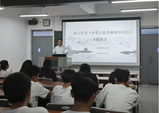 周春生指出,《学位法》的颁布是教育事业发展的里程碑,为学位授予工作提供了法律依据和保障,对提升学位质量、促进教育公平、推动教育现代化和教育强国建设具有重要意义。乔成芳指出,《学位法》的出台是新时代教育法治建设的重要支撑,为学位工作提供了完善的法律框架,为高层次创新型人才培养提供坚实的法治保障。曹宝月强调要全体师生以学位法的学习为契机,加强教风学风建设,协力促进我院本科教育高质量发展奠定良好的基础。