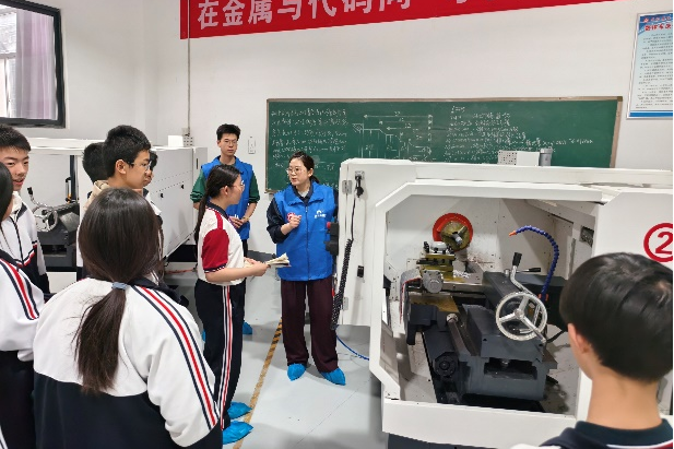 在商洛学院丹江校区工程实训中心,我院刘晓芬博士演示数控车床加工模块,并指导学生亲身体验,让他们感受到数字技术与机械制造融合的魅力。在这一过程中,学生们不仅锻炼了动手能力,更深刻理解了精密操作和严谨工程思维的重要性。