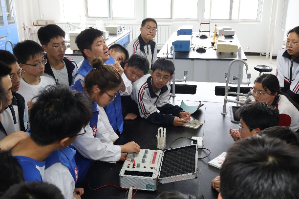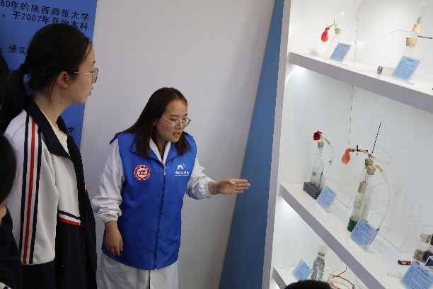 来到丹江校区4 号楼 4 楼实验室及教具展馆,精彩继续上演。王以寿博士在中学化学教学论实验室,带领学生进行电解水制氢实验,深入浅出地讲解氢能源的应用前景,让学生们在实践中感受化学与能源的紧密联系,激发了他们对清洁能源的探索热情。元飞博士在物理化学实验室,通过超纯蒸馏水制取、水质检测与锌铜电池组装测试等实验,引导学生从科学角度认识日常生活中的水与电,培养学生用科学思维解决实际问题的能力。苟杏杏博士则在化学教育成果展馆,为学生们解读各类化学实验教具背后的创新故事,让学生们领略到化学实验的独特魅力和创新价值。
