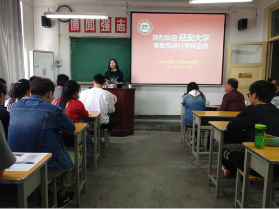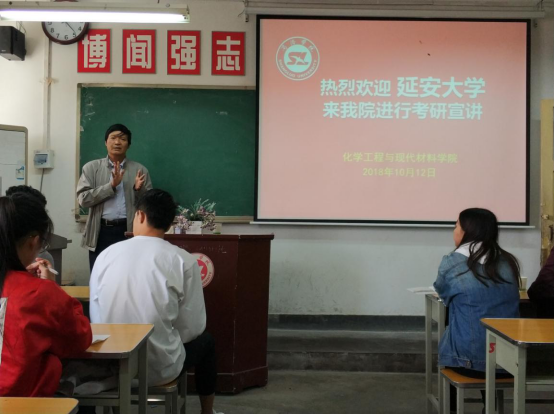为了帮助学生更好地了解考研动向,10月12日14:00,延安大学化学与化工学院代表王教授等一行三人来我院举行考研宣讲会。我院院长周春生,党总支书记李军富,党政办副主任王淦卿,团总支书记郝东,辅导员陈玉萍出席本次会议。会议由院长周春生主持召开。