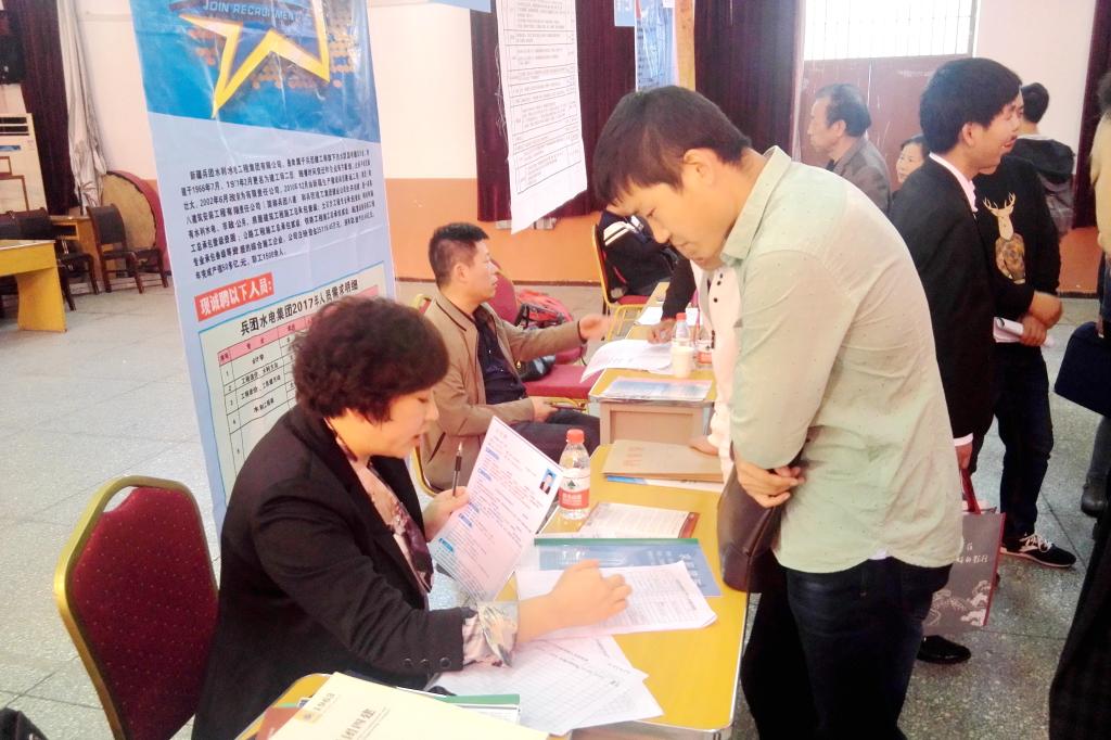 招聘会上,金属材料工程专业1302班张鹏第一个成功和新疆生产建设兵团签约,他告诉记者现在他感觉自己很轻松,之前对此次招聘会还有点紧张。因为一直也有想去新疆的意向,所以在招聘会之前做了充足的准备,向已经去新疆的学长咨询了很多问题。据张鹏分享经验,在校需认真学好专业课,并多参加校内活动或社会活动锻炼自己各方面能力,这些可以为求职提供帮助。