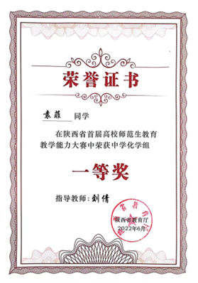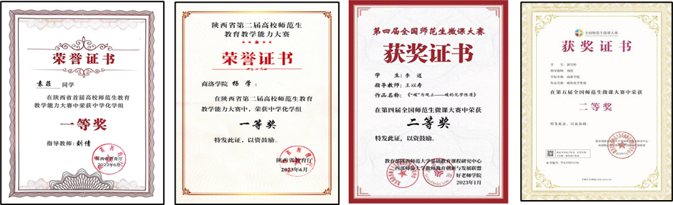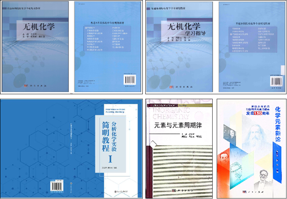 围绕化学专业四大基础化学课程获批省级一流课程、课程思政示范课和精品资源课9门次,专业教师主编教材6部,参编教材5部,其中无机化学为陕西省八校联用规划教材,获得陕西省高等教育优秀教材二等奖。