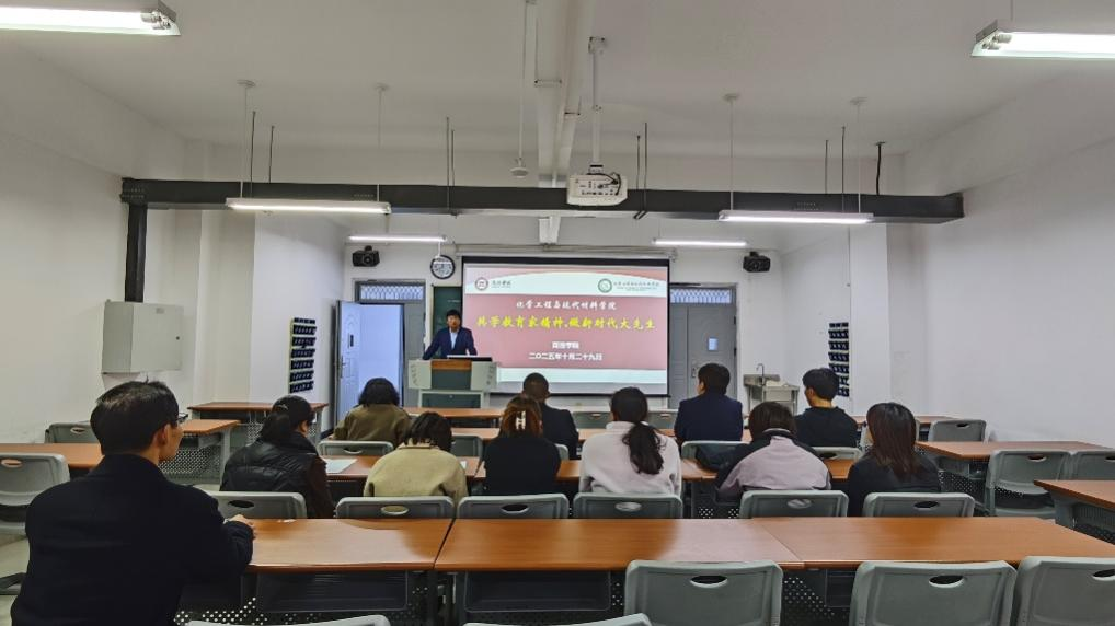 为深入学习贯彻习近平总书记关于教育的重要论述,认真落实弘扬教育家精神的指示要求,2025年10月29日,化学专业师德师风教育专题活动“共学教育家精神,做新时代大先生”顺利开展。本次活动由系主任孙强强主持,化学专业全体教师参加。